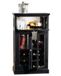 Sleek lines with brushed nickel hardware give this wine and spirits cabinet its contemporary appeal. The upper door drops down to become a servin