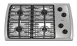 36 in. Porcelain Deep Sump Cooktop. Center-Mounted Linear Flow Gas Valves. Full-Width UltraSoft Design Cast Iron Grates and Burner Caps. Removable Control Knobs.
