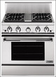 Four sealed gas burners offer versatility and quick heat-up for boiling. One Dual Flame burner delivers 15000 BTUs for pan-searing yet reduces to 570 BTUs for heating delicate sauces. Flame-Sensing re-ignition automatically re-ignites flame if acc...