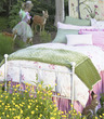 ABOUT THIS LINEN Bedding Features Easy-care puckered plisse seersucker Finished with white eyelet lace Available in White Ecru Lt. Blue Petal