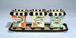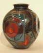 "Hand-made ceramic raku vase 8.5""h x 7""w. Black clay with multi-colored glazes. Sergio has masterfully decorated each angle with a different raku"
