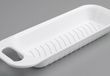 Stepped feet allow this rugged safety glass cutting board to slide easily along the countertop without scratching. Fits Precision Series sinks. Length: 19-9/16 in. Width: 10-5/8 in.