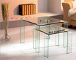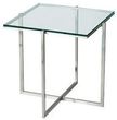 Each piece has a.25 in. tempered clear glass top with satin steel legs and frame.