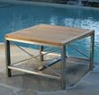 Designed by Andrew Gower this table combines high grade 304 stainless steel with premium teak. Ships knocked-down in cartons and with easy assembly.